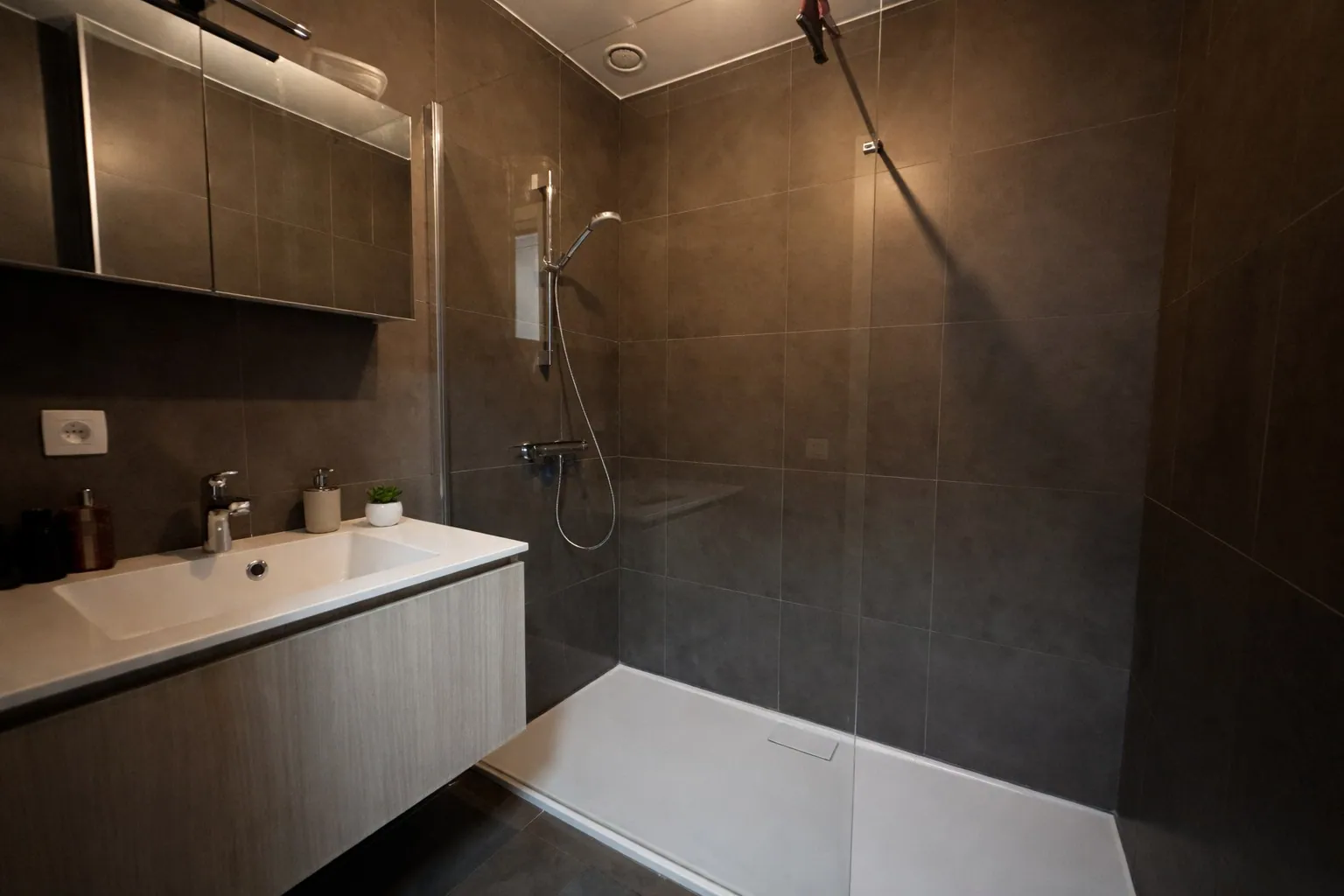 Dit instapklare appartement met heel mooie afwerking heeft 2 slaapkamers, een lichtrijke living met ingerichte keuken, een praktische keukenberging, badkamer met inloopdouche en lavabomeubel. Extra lichtinval door de glazen deur tussen woonkamer en hal, handige dubbele ingemaakte kast in de inkom, en een afzonderlijk toilet.