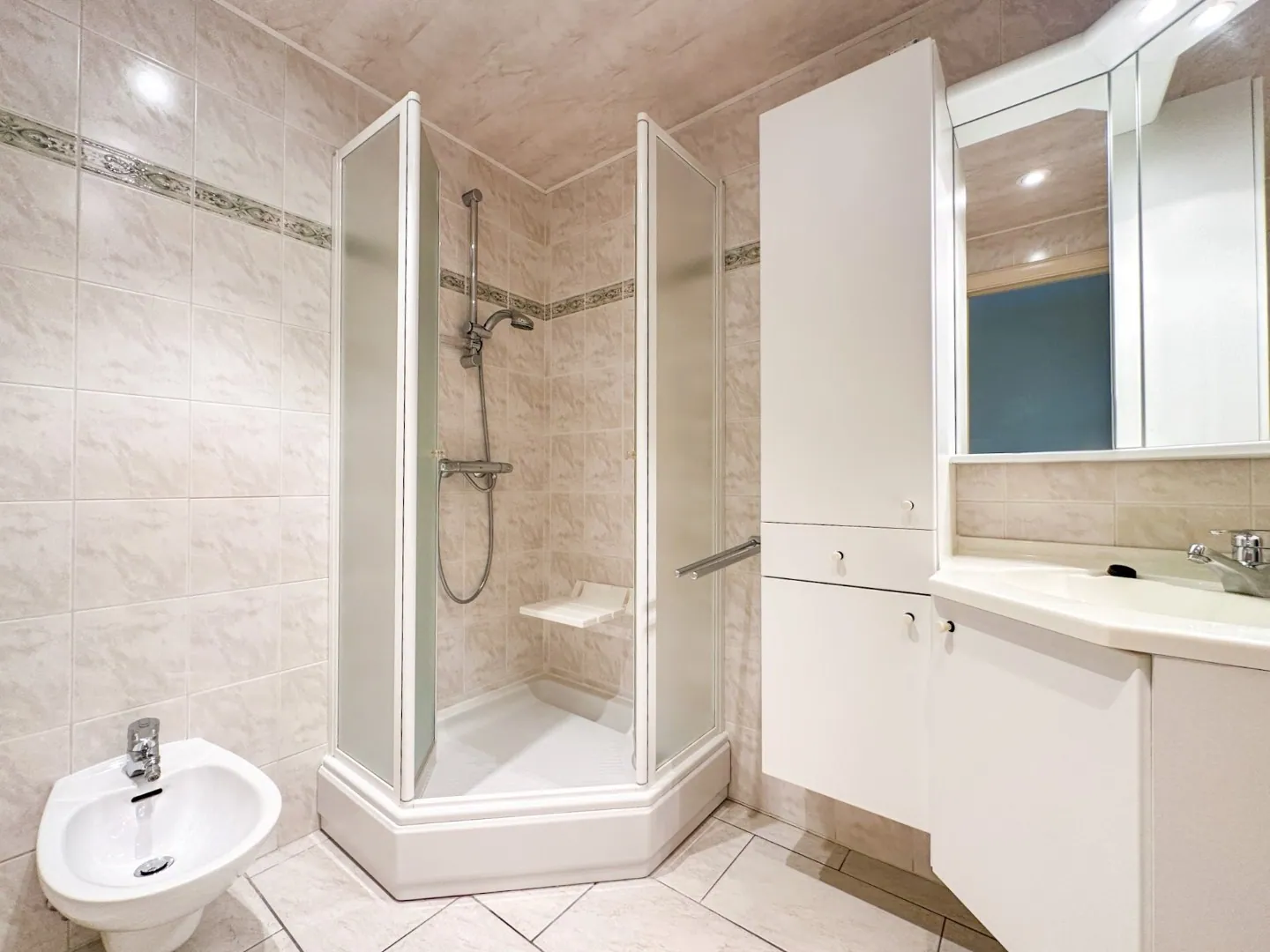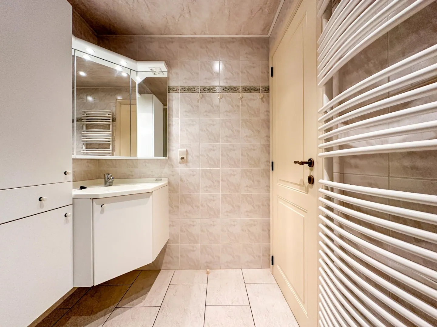Via de nachthal bereiken we het apart toilet (met handwas), de badkamer met lavabomeubel en douche en de 2 ruime slaapkamers (waarvan 1 met ingemaakte kastenwand), beide met doorgang naar het terras op de achterzijde.