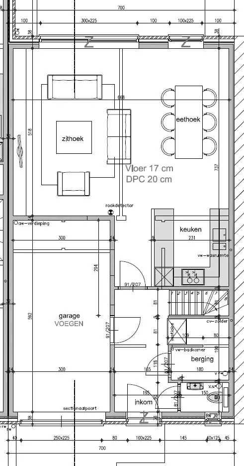 GELIJKVLOERS - inkomhal met gastentoilet, lichtrijke leefruimte met uitgeruste open keuken, praktische berging en de inpandige garage (met voorziening voor wasplaats)