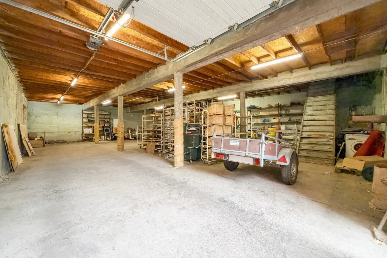 - magazijn: een ruim magazijn bestaande uit 2 delen met elk een grote inrijpoort, 1 deel heeft een zolderverdieping voor extra opslag