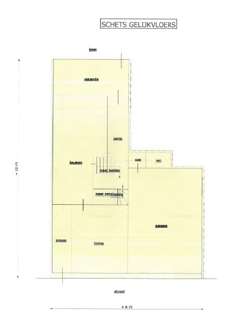 GELIJKVLOERS: inkomhal, zitplaats, eetplaat met open keuken, wasplaats/veranda, grote inpandige garage, apart toilet, zonnig terras/binnenkoer met praktische berging,