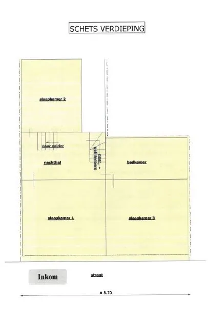 VERDIEPING: nachthal, 3 slaapkamers en badkamer