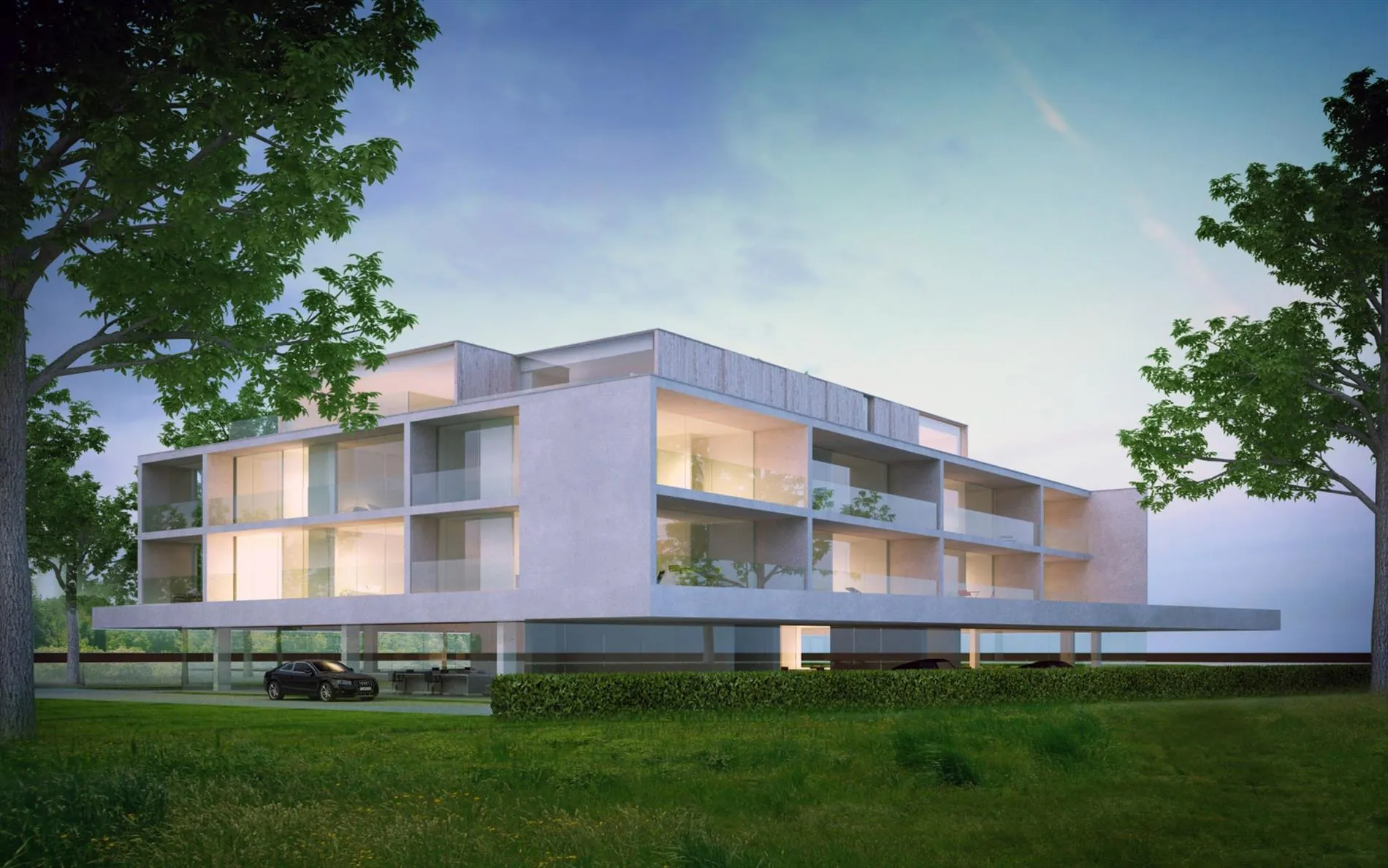 Aankoopmogelijkheid van een garagebox of autostaanplaats. Prijzen vanaf 180.000 EUR (excl. kosten).